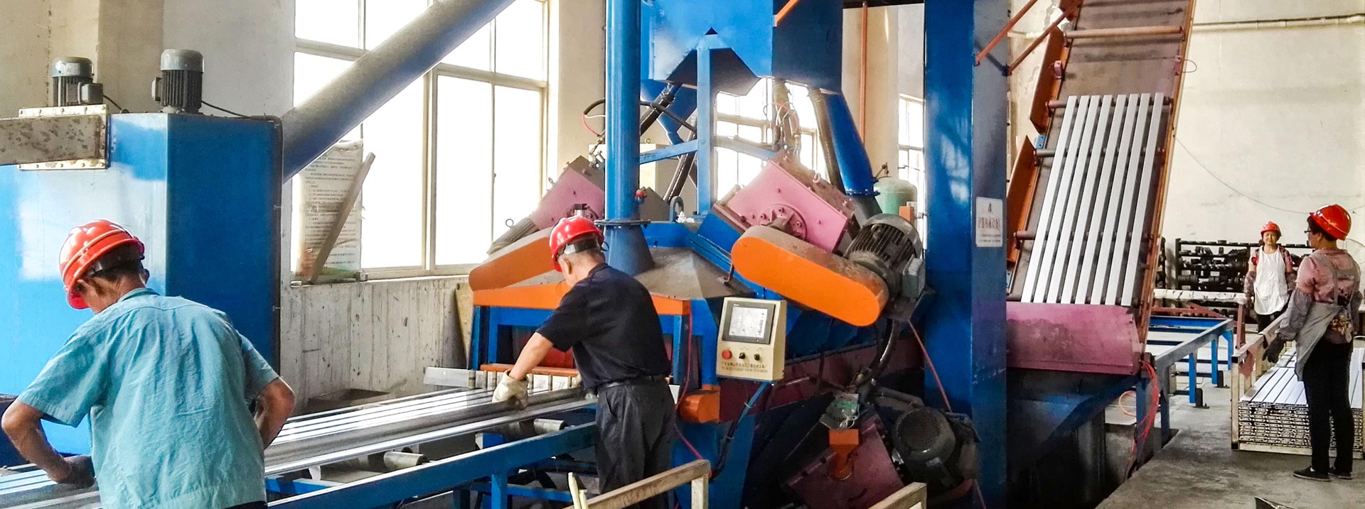 專業(yè)生產(chǎn)多種鋁合金型材及制品的企業(yè),已有二十多年的經(jīng)驗(yàn)和歷史?,F(xiàn)有鋁型材擠壓設(shè)備四套,分別為1800T、1000T、630T、600T擠壓生產(chǎn)配套設(shè)備有10m長(zhǎng)不銹拋丸機(jī)。6m鋁型材表面拋光機(jī),4.5m普拉迪鋁材加工中心,多臺(tái)高精度自動(dòng)切割機(jī),雙頭轉(zhuǎn)向切割機(jī),備有12m長(zhǎng)時(shí)效爐。